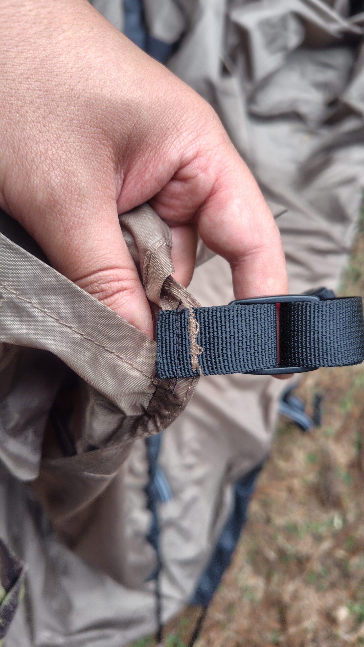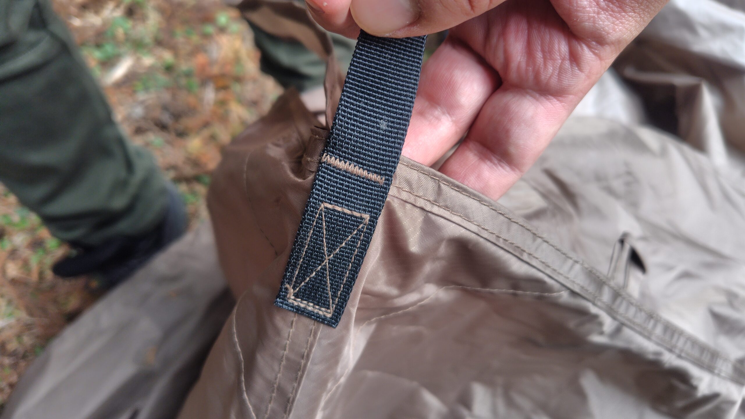これは四隅のペグダウンするベルトの縫製です